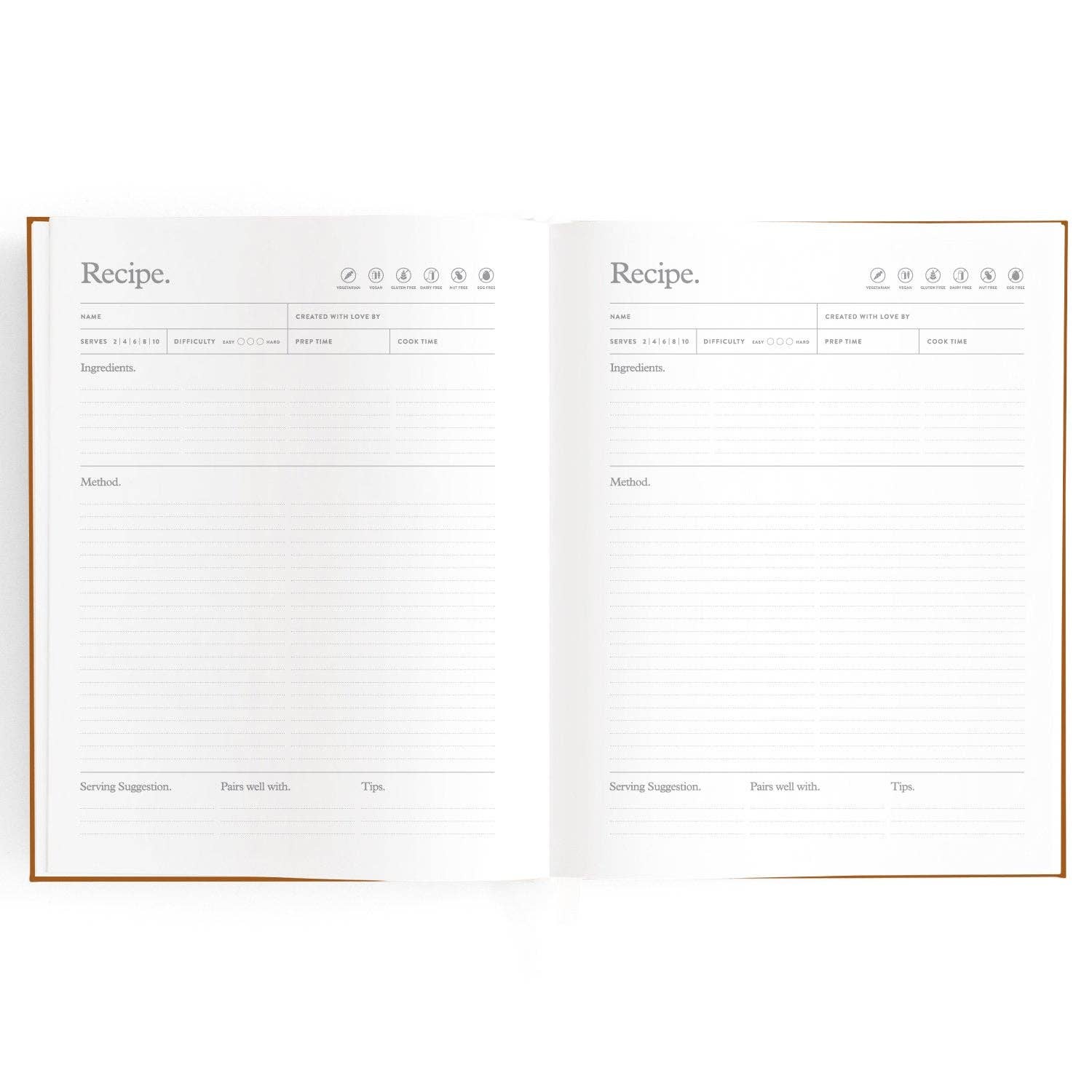 - Spaces for dietary requirements, serving sizes, difficulty, and serving suggestions
